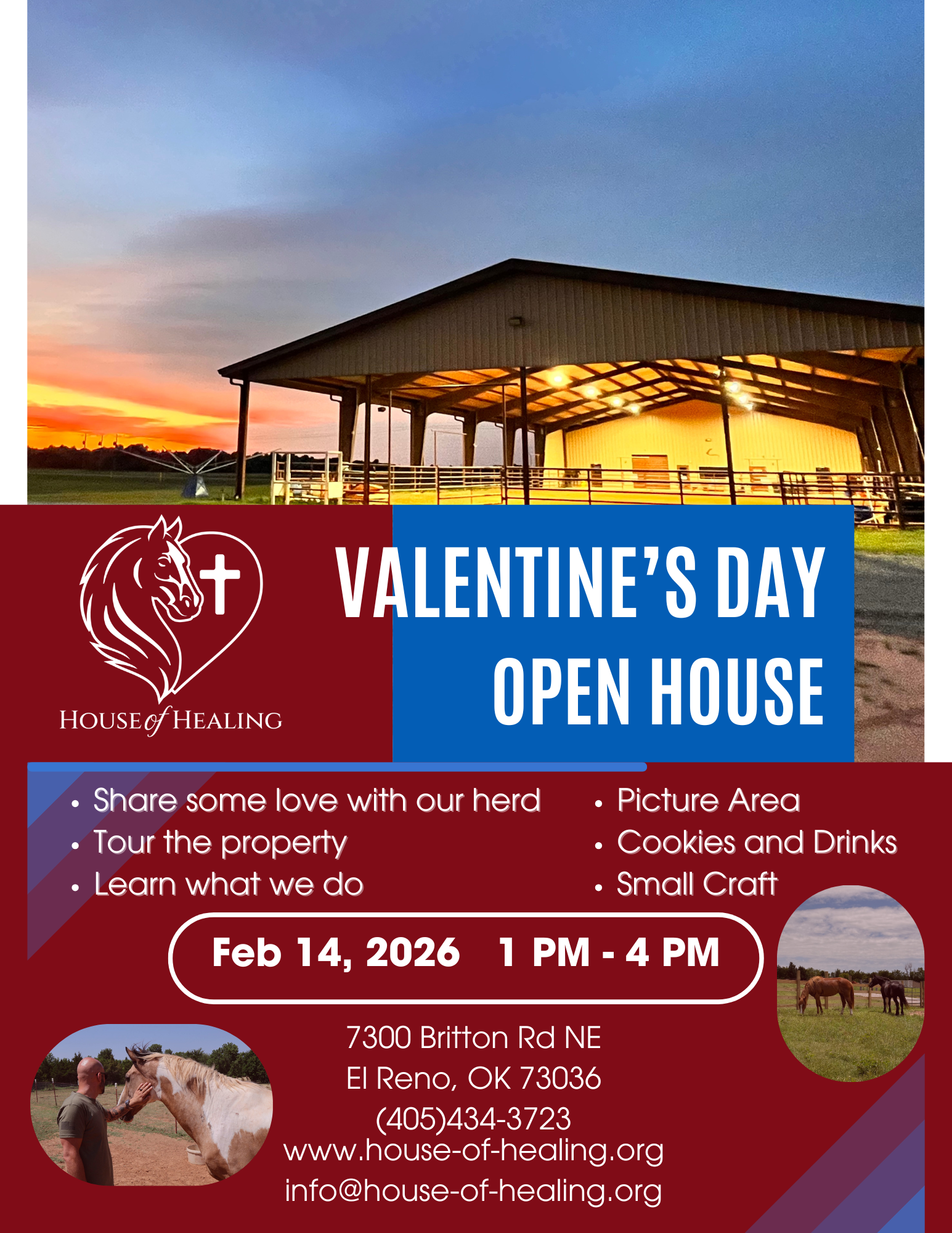 The purpose of House of Healing is to provide Christ-centered mentoring and a safe environment where young people can experience unconditional love, acceptance, growth in their social intelligence and confidence, and work toward restoration of broken relationships. Our mission is to heal the broken hearts of those in our care as we educate, guide, and share our life experience, our strength, and our hope. House of Healing empowers young people to take charge of their lives and become responsible, contributing adults in specific ways: Equine Experience, Mentoring, Parental Support, Team Building Challenge Elements, Tailored One-Two Day Events.